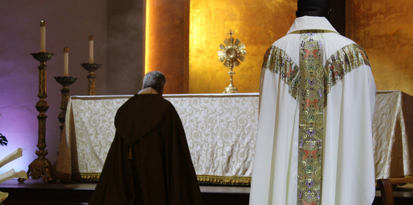 Detrás del altar, se encuentra el Sagrario en el cual se centra toda la atención. A los lados se encuentran las capillas dedicadas a la Virgen María y a San José.
